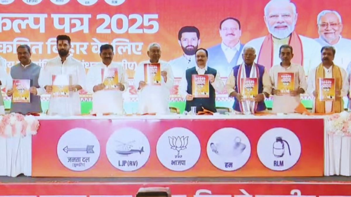 लाइव सिटीज, पटना: बिहार में मतदान को सिर्फ 6 दिन बाकी बचे हैं. एनडीए से लेकर महागठबंधन तक, सभी दल पूरे दमखम से चुनाव प्रचार में जुटे हैं. महागठबंधन ने अपने घोषणा पत्र के जरिए बिहार के लोगों से कई बड़े वादे किए हैं. अब एनडीए भी अपना संकल्प पत्र पटना के मौर्या होटल में जारी कर दिया है. इस दौरान सीएम नीतीश और बीजेपी अध्यक्ष समेत कई बड़े नेता मौजूद रहे. मेनिफेस्टो में महिलाओं, बेरोजगारों, युवाओं, महिलाओं, किसानों पर खास फोकस किया गया है.