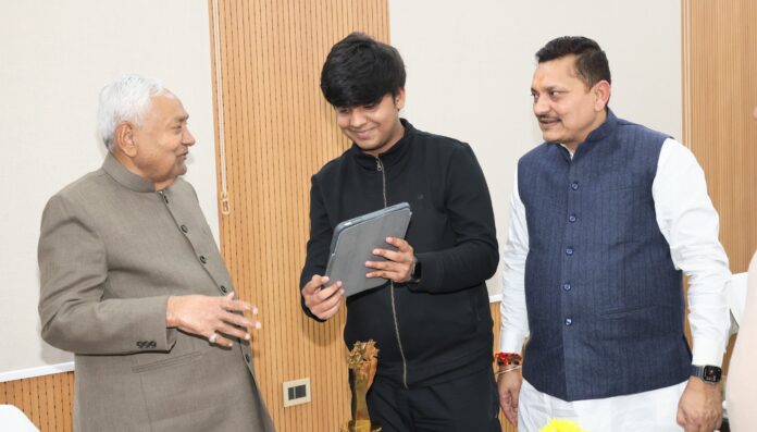 लाइव सिटीज, मोतिहारी: पूर्वी चंपारण (मोतिहारी) के 18 वर्षीय छात्र, युवा सामाजिक उद्यमी एवं Chegg org Global Student Prize 2025 (USD 100,000) से सम्मानित पहले भारतीय आदर्श कुमार ने बिहार राज्य नागरिक परिषद के महासचिव छोटू सिंह के साथ मुख्यमंत्री नीतीश कुमार से शिष्टाचार भेंट की।
