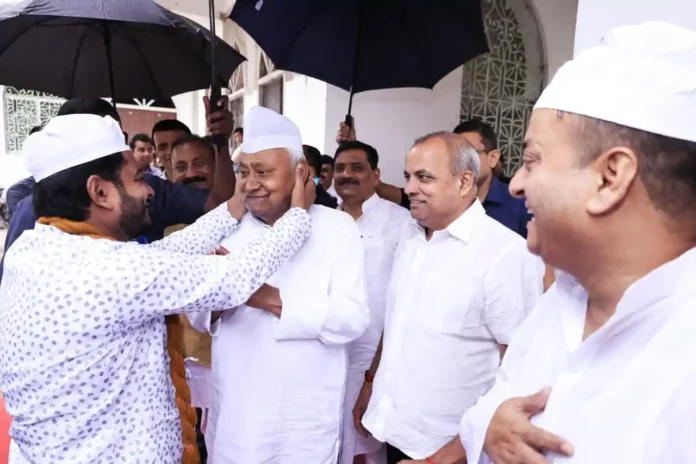 लाइव सिटीज, पटना: मुख्यमंत्री नीतीश कुमार ने आज ईद-उल-फितर के अवसर पर खानकाह-मुजीबिया फुलवारीशरीफ जाकर वहां के सज्जादा नशीं हजरत सैयद शाह आयतुल्ला कादरी से मुलाकात कर उनकी दुआयें ली और ईद की बधाई एवं शुभकामनायें दी।