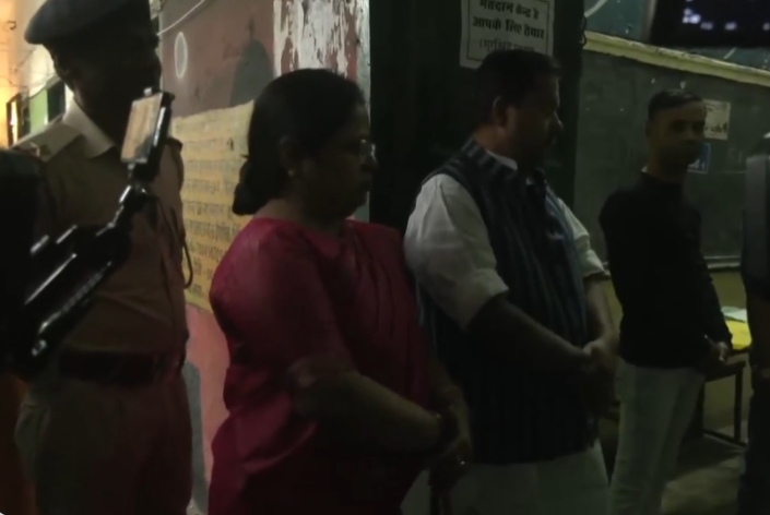 बिहार के मंत्री और बांकीपुर से भाजपा उम्मीदवार नितिन नवीन अपनी पत्नी के साथ पटना के दीघा में मिलर हाई स्कूल, बूथ संख्या 394 और 396 में अपना वोट डालने पहुंचे.