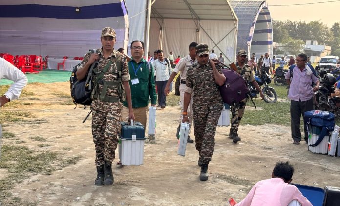 लाइव सिटीज, पटना: गुरुवार को बिहार विधानसभा चुनाव 2025 के पहले चरण का मतदान होगा. 18 जिलों की 121 विधानसभा सीटों पर वोट डाले जाएंगे. इसके लिए प्रशासनिक तैयारियां पूरी हो चुकी है. पूर्व संध्या पर तमाम जिलों में अलग-अलग मतदान केंद्रों पर ईवीएम, वीवीपैट, स्याही, बैलेट बॉक्स और अन्य जरूरी सामग्री डिस्पैच किया जा रहा है. सुरक्षाकर्मियों के साथ मतदानकर्मी निकल चुके हैं.