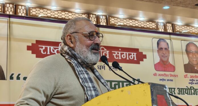 गिरिराज सिंह ने कहा कि लव जिहाद पर संसद में डेटा पेश करने की मांग करने वाले ओवैसी को इसकी शुरुआत हैदराबाद से करनी चाहिए. उन्होंने कहा कि असल में यह लव जिहाद नहीं बल्कि एक सुनियोजित गजवा-ए-हिंद की तैयारी है. लव जिहाद, लैंड जिहाद और थूक जिहाद समेत जिहादों का सिलसिला है.