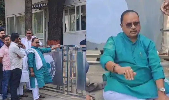 लाइव सिटीज, पटना: बिहार में विधानसभा चुनाव से पहले सियासी उथल-पुथल चल रही है. इसी बीच गोपालपुर से जेडीयू विधायक गोपाल मंडल अपने समर्थकों के साथ मुख्यमंत्री आवास की गेट पर पहुंचे और जब अंदर जाने की इजाजत नहीं मिली, तो वह मुख्य गेट पर धरने पर ही बैठ गए.